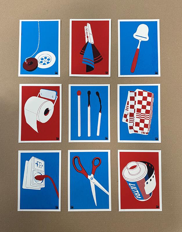 Van enkele van onze ontwerpen hebben we zeefdrukken gemaakt in een kleine oplage, handgedrukt, genummerd en gesigneerd.